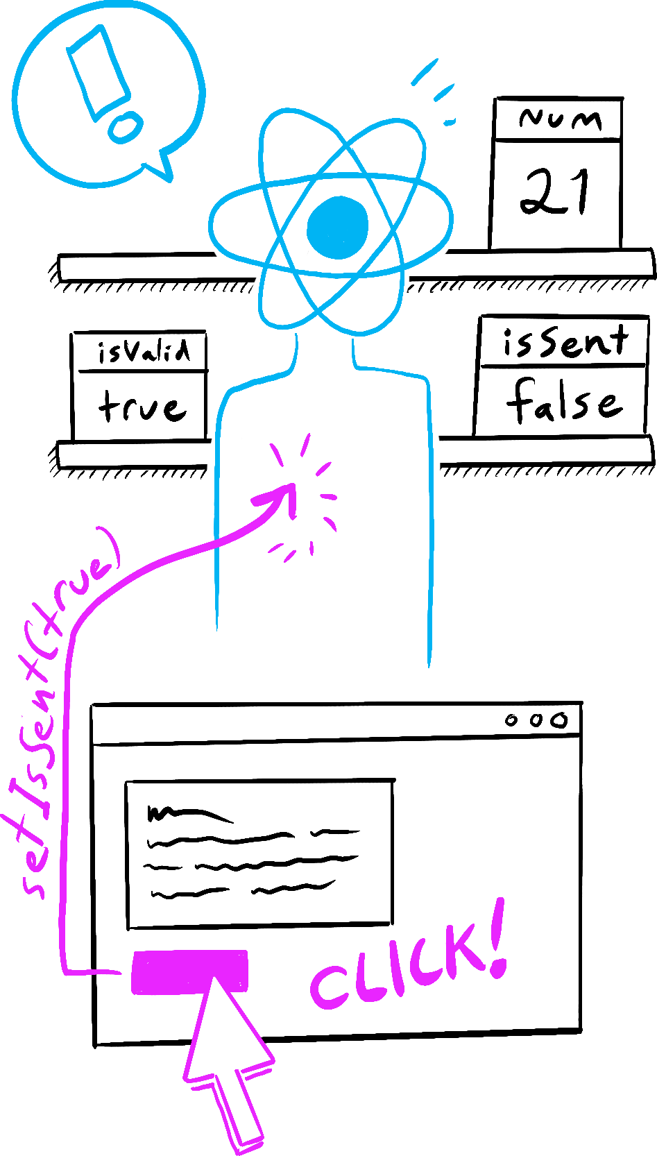 এই উদাহরণে “send” বাটনে চাপলে setIsSent(true)